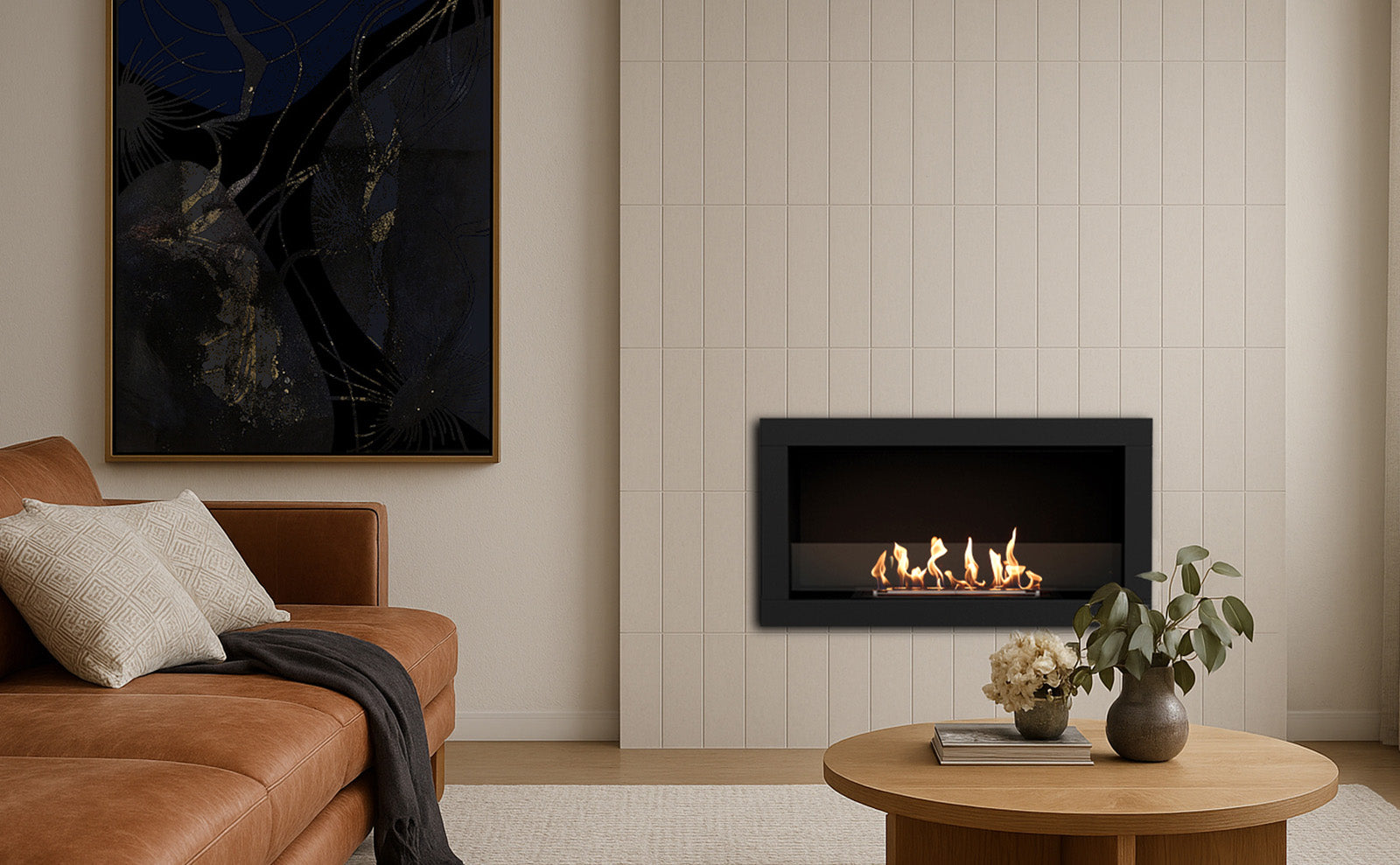 Available in a timeless black finish, Flex Fireplaces come with Stainless Steel or Black burners.